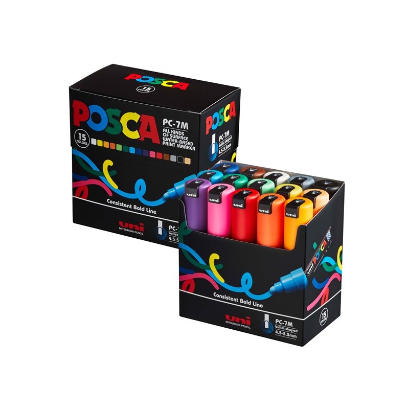 Astuccio marcatore Uni Posca PC7M punta tonda large 4,5 5,5 mm colori assortiti Uni Mitsubishi conf. 15 pezzi