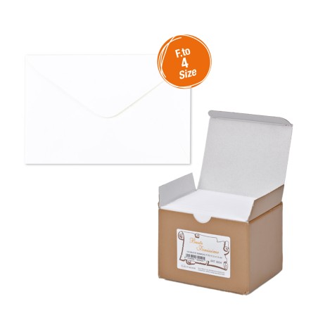 Scatola in cartone con 100 buste con patella e taglio a punta. Formato 4-75x112mm.