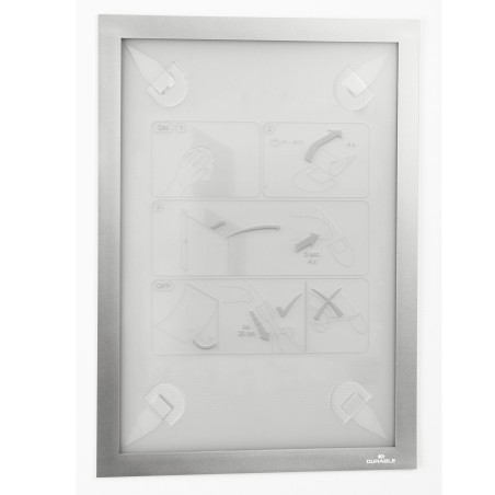 In crilex antiurto di altissima trasparenza. Dotate di gancio/fermaglio per essere appese. Set di 2 profili a scatto in alluminio anodizzato da 25mm, completo di tappi terminali in plastica nera e ganci scorrevoli. Due cuscinetti in gommapiuma collocati all'interno del profilo, impediscono al poster di scivolare. DURAFIX® è la clip con retro adesivo con chiusura magnetica, ideale per avere sempre a portata di mano note, promemoria e documenti. Il retro adesivo garantisce una perfetta applicazione permanente sulle superfici lisce. Il formato CLIP è ideale per promemoria, note, memo e appuntamenti. Attaccala, aprila, blocca il foglio e cambialo quando vuoi! Pack 5 pezzi colore argento. Dimensioni: 60x17mm. Cornice espositiva per esporre informazioni ed avvisi in modo elegante ed ordinato. Adatta a superfici lisce. Dotata di pannello frontale in pvc trasparente magnetico anti riflesso e retro adesivo riposizionabile. Può essere rimossa e riposizionata su vetro, identica su entrambi i lati, consente una visualizzazione fronte-retro. L'inserto è facilmente sostituibile sollevando il pannello frontale magnetico. Utilizzabile in senso orizzontale e verticale.