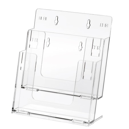 Set 6 vaschette portadepliat trasparenti da parete, comprensive di supporto e frontalino. Dimensioni: 24x15x95cm.