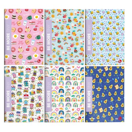 Maxiquaderno con copertina in cartoncino da 250gr con verniciatura U.V. Carta da 80gr 40+2 fogli. Rilegatura con punto metallico.