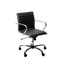 Sedia girevole operativa con schienale in rete - supporto lombare regolabile - elevazione a gas - meccanismo synchro con 3 blocchi antishock con traslatore e variatore di forza a contatto permanente; Rivestimento in tessuto "PLUS - Bondai" 100% poliestere no flame e certificazioni di infiammabilità 1.IM UNI 9175. Completa di braccioli regolabili e poggiatesta. Altezza totale: 124-134cm; Profondità tot: 68cm; Alt. schienale: 58cm (80); Larghezza schienale: 46cm; Larghezza sedile: 48cm; Profondità sedile: 47cm; Alt. sedile: 42-55cm.